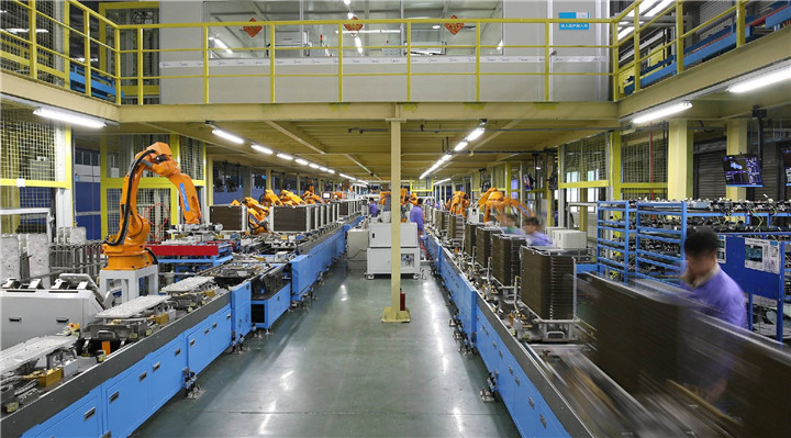 目前,匯興智造空調(diào)自動(dòng)化生產(chǎn)線已深入零配件生產(chǎn)、內(nèi)外機(jī)組組裝、品質(zhì)檢測(cè)、成品入庫(kù)等多個(gè)生產(chǎn)環(huán)節(jié),自動(dòng)化程度的提高,可令產(chǎn)品的生產(chǎn)效率、產(chǎn)品品質(zhì)實(shí)現(xiàn)整體提升,信息化建設(shè),完成從自動(dòng)化生產(chǎn)到智能制造的轉(zhuǎn)變。