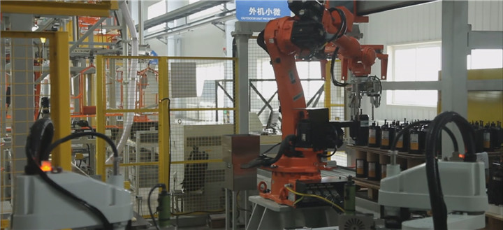 (四)自動(dòng)化下線機(jī):通過(guò)機(jī)器人完成自動(dòng)夾取產(chǎn)品、自動(dòng)堆碼、自動(dòng)取夾板等操作,全過(guò)程無(wú)人化操作,可滿足產(chǎn)品質(zhì)量在150KG內(nèi)的自動(dòng)堆垛,安定效率高。