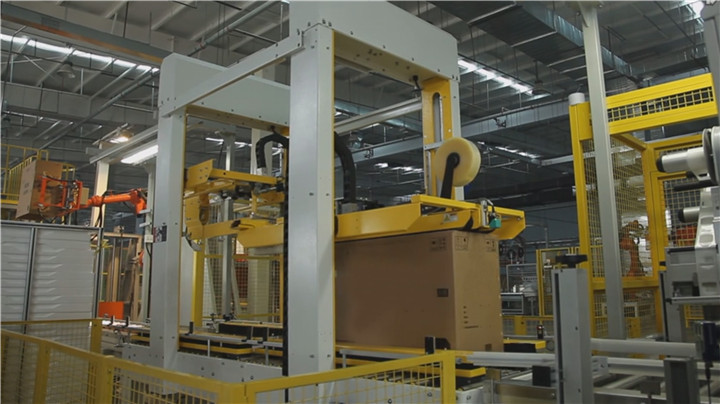 自動(dòng)包裝系統(tǒng)由自動(dòng)繞膜機(jī)、自動(dòng)開(kāi)箱、套箱、自動(dòng)打釘、打包機(jī)、自動(dòng)化下線機(jī)等組成: