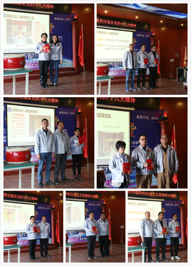為了增強企業凝聚力,表彰先進,樹立楷模,激勵員工奮發上進,實現持續有效的激勵機制和企業良好傳統。會議發起第三個議程——表彰儀式,對2017年在工作中表現突出的團隊和個人給予表彰。“獲獎評語”送給每一個獲獎團隊和個人,感人肺腑,催人深省。紅艷艷的榮譽證書和紅包送給每一個獲獎團隊和個人,引以為傲,催人奮進。“最佳勞模獎”得主彭福生代表獲獎團隊和個人向公司領導、同事表達了謝意,同時也表達了對未來的期望和繼續努力的決心。