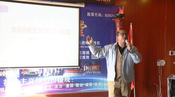 大會的最后一個議程是匯興智造鐘輝董事長作會議總結及2018年工作展望。鐘輝董事長說道:“我們報喜不藏憂,變化不變心。2017年,匯興智造喜事不斷:入選東莞市倍增計劃試點企業;成立東莞市院士工作站;進入新三板創新層;獲批了35畝企業用地;市重大項目補助落實;德國子公司建立;在國際科技合作周活動中,承辦的德國館和論壇萬眾矚目,省長、各部級領導、院士大加贊賞;申報了廣東省成長型企業;戰略性新興產業骨干(培育)企業評審通過;銀行授信額度增大;知識產權貫標;業績倍增,納稅1000多萬,成為大嶺山鎮納稅大戶。雖然我們取得了好的成績,獲得了好的聲譽,但我們不能藏憂,人才建設的加強;管理制度的完善;銷售業績的增長;訂單的消化;收款流程的優化;各部門溝通協調的加強等等,我們還有很多問題需要解決。‘茍日新,日日新,又日新’,生活從不眷顧因循守舊、滿足現狀者。我們要變化,有了變化,才有進步。我們的車間變得更規范,辦公區域變得更漂亮;供應商變得更優質;我們提供給客戶的產品和服務變得更豐富;客戶群體變得更高端。但是不管怎么變,任爾東西南北風,在即將到來的2018年,我們仍然堅守初心,牢記使命,砥礪前行。”