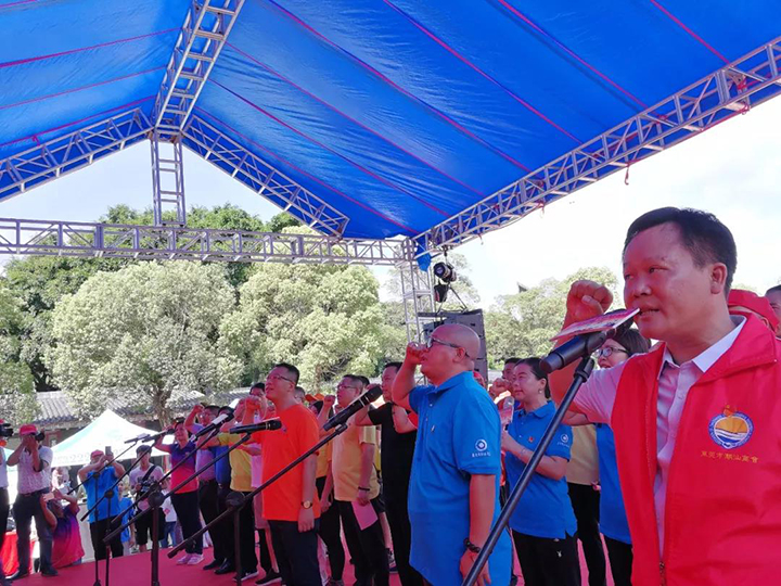 活動(dòng)開端, 在東莞市江西商會(huì)黨支部書記、匯興智造董事長鐘輝等商協(xié)會(huì)黨支部負(fù)責(zé)人帶領(lǐng)下,近千名黨員共同重溫入黨誓詞。