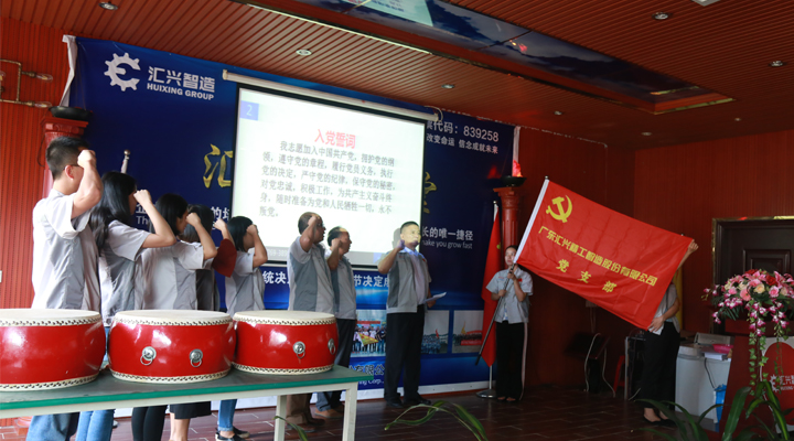 在大會(huì)上,匯興智造黨支部全體黨員上臺宣誓,重溫《入黨誓詞》,由匯興智造總工程師許光輝教授領(lǐng)誓,其余黨員們跟誓。在這莊嚴(yán)神圣的時(shí)刻,全體黨員表達(dá)了對中國共產(chǎn)黨的忠誠和信念。