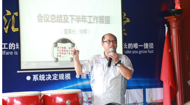 最后,由鐘輝董事長作會(huì)議總結(jié)及下半年的工作展望。回首上半年,經(jīng)過全體匯興人的共同努力,匯興智造的業(yè)績趕超去年一年,并再次交出了亮眼的成績單,以“優(yōu)等生”的身份成功晉級到新三板的創(chuàng)新層,這對公司未來的發(fā)展,特別是沖刺更高的資本巿場有著重要而深遠(yuǎn)的意義。作為植根于大嶺山的本土民營企業(yè),十七年來勤勤勉勉,絲毫不曾懈怠,也感恩大嶺山鎮(zhèn)這片熱土和好的營商環(huán)境,眾多領(lǐng)導(dǎo)干部、學(xué)者專家多次蒞臨匯興智造參觀調(diào)研和指導(dǎo),給匯興智造的發(fā)展建言獻(xiàn)策,增光添彩。匯興智造作為大嶺山鎮(zhèn)市級“倍增計(jì)劃”試點(diǎn)企業(yè),也是東莞市知識產(chǎn)權(quán)重點(diǎn)保護(hù)企業(yè),新近又被獲評為“2016年度廣東省守合同重信用單位”。今年五月份,企業(yè)倍增辦順勢成立,匯興智造力爭在兩年內(nèi),狠抓業(yè)績,推動(dòng)企業(yè)實(shí)現(xiàn)規(guī)模倍增、效益倍增、納稅倍增,一切以結(jié)果為導(dǎo)向,所有匯興人定以鐵一般的信仰,鐵一般的信念,鐵一般的紀(jì)律,鐵一般的擔(dān)當(dāng)、朝著既定的目標(biāo)奮勇前進(jìn)。