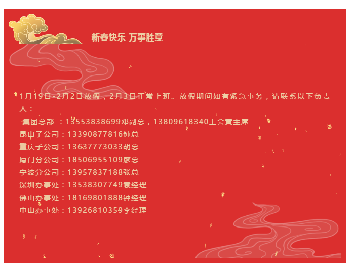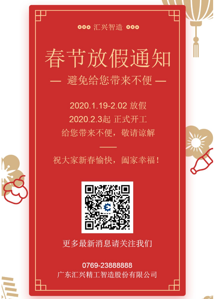 匯興智造丨春節(jié)放假通知!